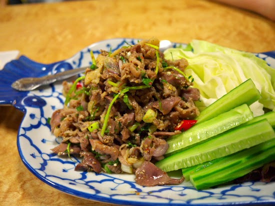 コリコリとした部分など、色々な部位が入っている鶏のラープ。